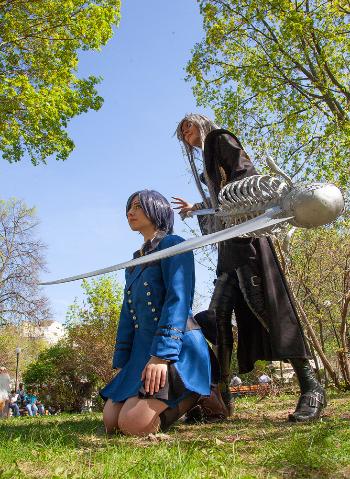 Катя Юрикова предстала в необычном для девушки образе Гробовщика из «Тёмного дворецкого». Это легендарный жнец в отставке, который управляет похоронным бюро и работает с преступным миром Великобритании. Любитель посмеяться и поесть печенье в виде косточек. По словам Кати, она уже давно хотела примерить на себя его костюм.