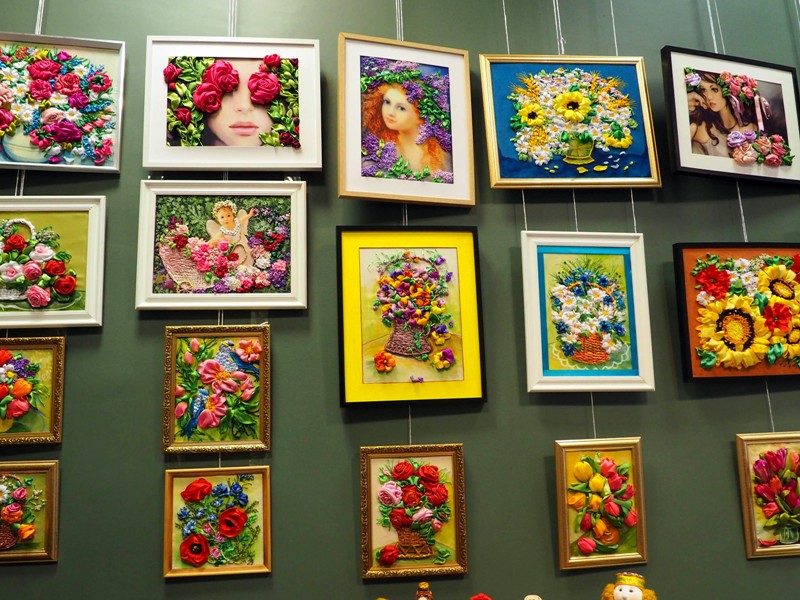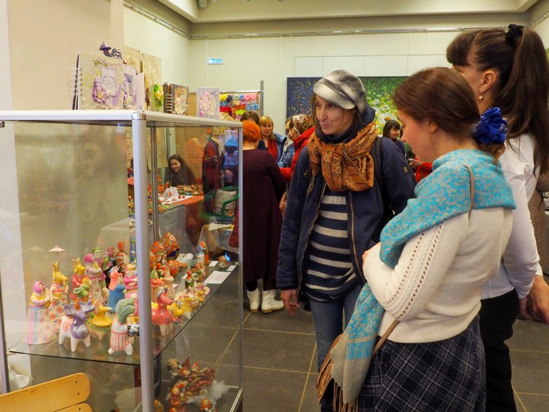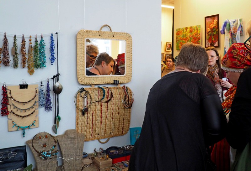 Здесь можно купить украшения и полезные вещи, но выставка считается социальной: свои работы эскпонируют пенсионеры и люди под соцзащитой Ленинской района, которые активно творят в сообществе. У них много работ, они всегда долго готовятся, имеют худсовет, который отбирает участников. Их творческий клуб ежедневно приезжает в выставочный зал не только ради показа творчества, но и ради общения, которое им необходимо. Участники объединяются в групповые проекты и создают совместные вещи для быта, одежды, уюта. Такая территория творчества рождает новые клубы и проекты.