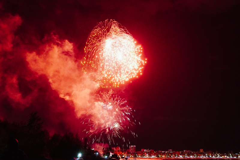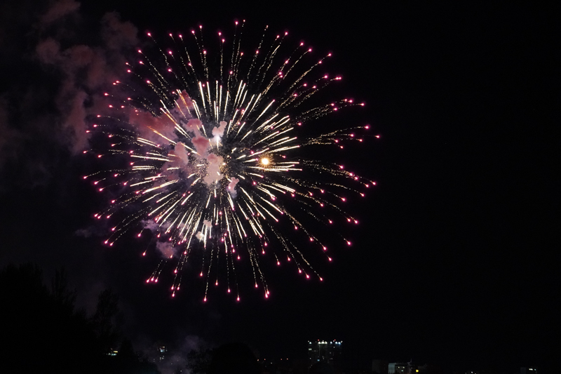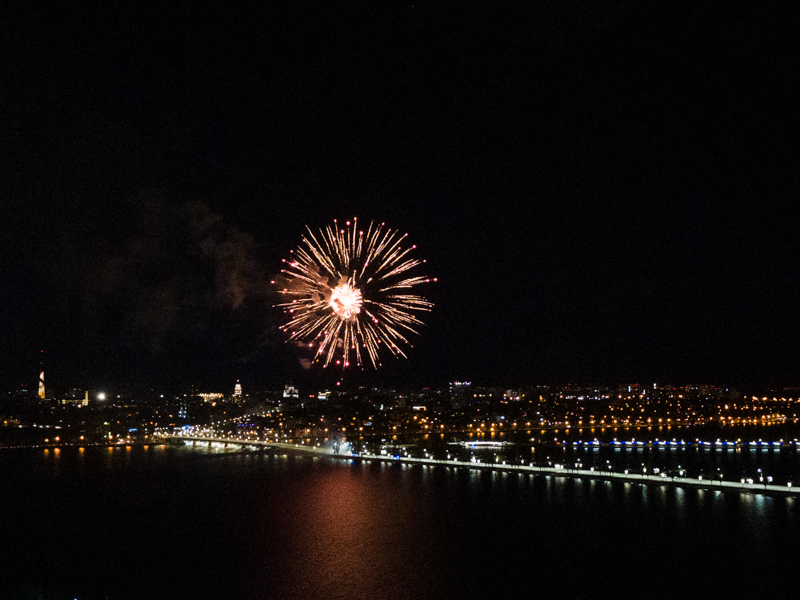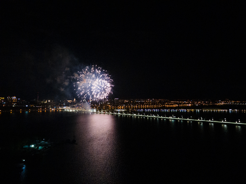 День Победы в Воронеже по традиции закончился 10-минутным салютом, произведенным с дамбы Чернавского моста.