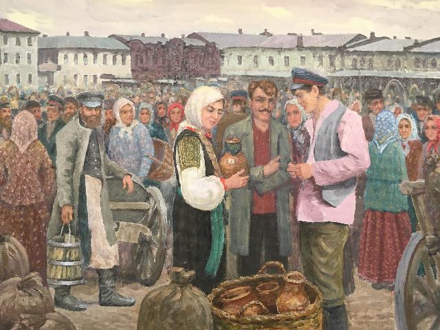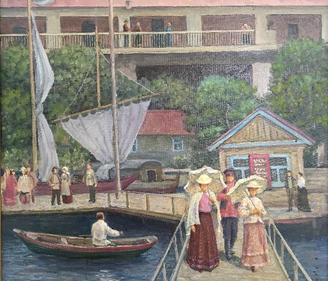 Излюбленный жанр мастера – исторический городской пейзаж. Воронеж петровских времен особенно привлекает Курзанова. В поле его зрения попадают эпизоды, связанные со строительством русского военного флота, фигуры крупных отечественных историков и деятелей культуры. Так что если захотите, к примеру, представить себе, как выглядели легендарные воеводы Семён Сабуров, Василий Биркин или Иван Судаков – добро пожаловать на Пушкинскую. Немало холстов посвящено знаменитым российским литераторам с Пушкиным во главе, а тему жизни и деятельности Алексея Кольцова художник разрабатывает с молодости.