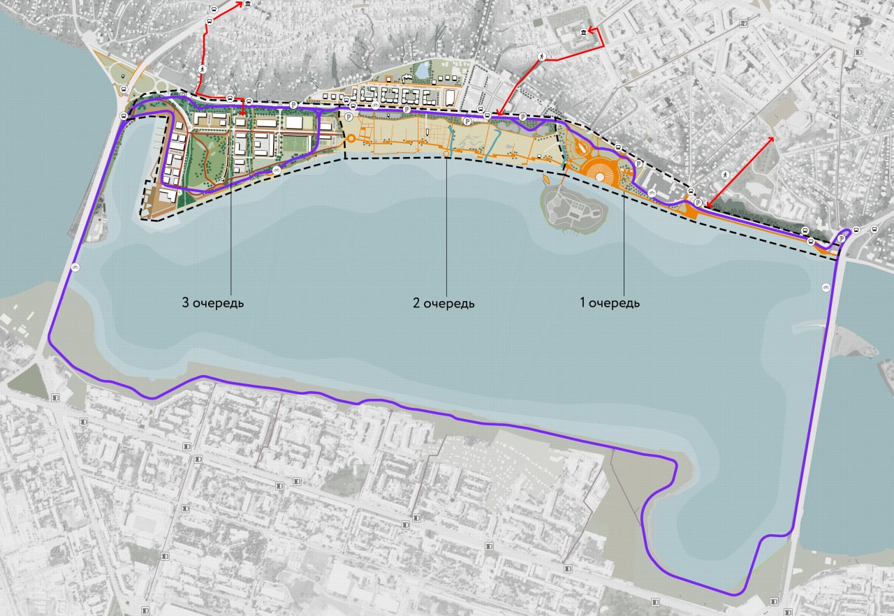 Как уже сообщалось, в первую очередь на участке от Чернавского моста до Адмиралтейской планируется создать городское общественное пространство с разнообразным функциональным наполнением – в том числе для пеших и велосипедных прогулок. Как отметил мэр Воронежа Вадим Кстенин, проект первой очереди готов, а работы начнутся после конкурсного отбора подрядчика.