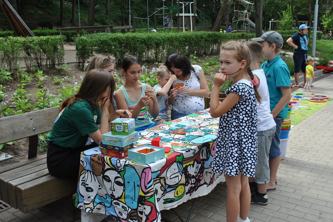На территории Воронежского центрального парка были организованы тематические выставки работ мастеров декоративно-прикладного творчества и народных промыслов, литературная игровая программа "Библиошатер хорошего настроения", различные мастер-классы, конкурсы, квесты, фотозоны и развлечения для детей – одним словом, очень много творческих площадок, где можно было проявить свои способности.