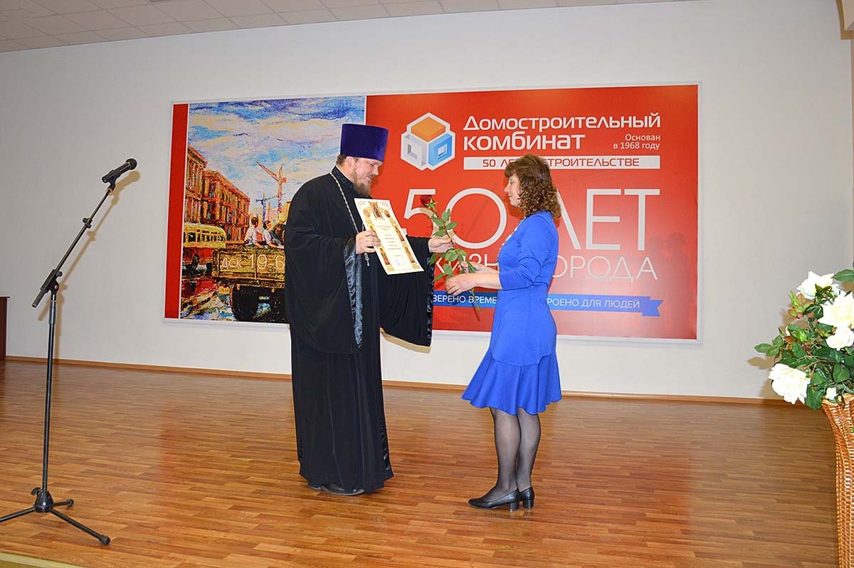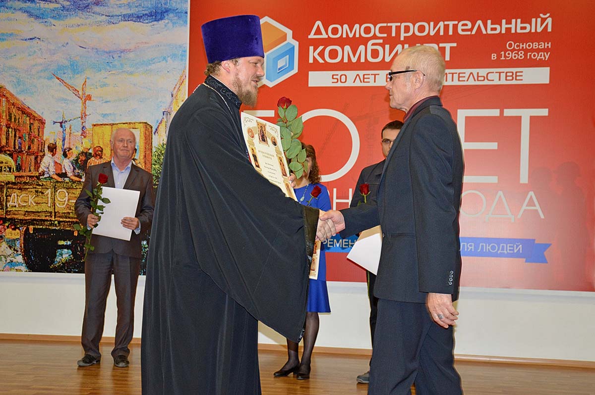 В юбилейный год воронежского Домостроительного комбината его сотрудники продолжают получать заслуженные награды. 24 апреля труды и усердие строителей отметила Воронежская епархия.