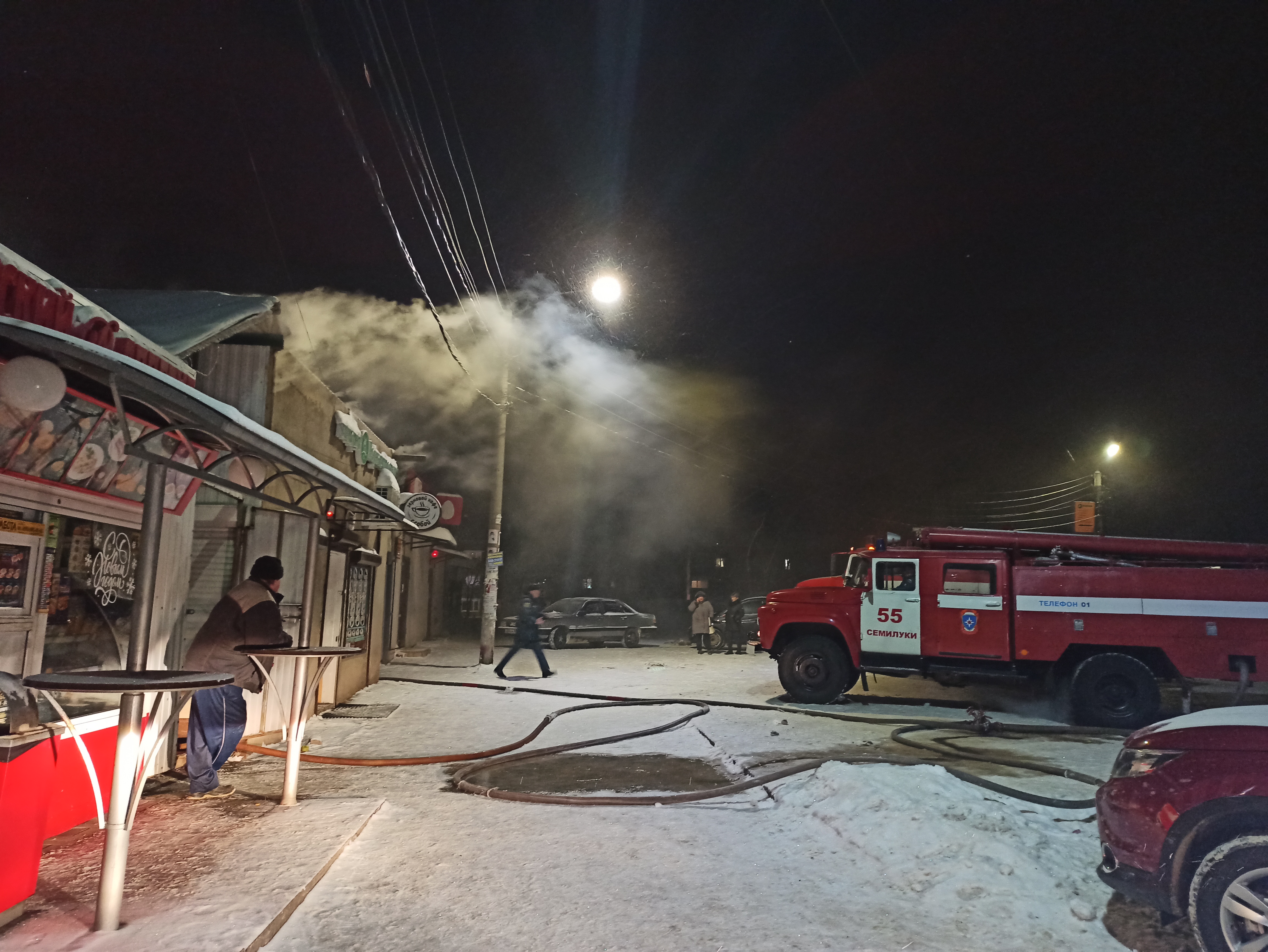 – В результате пожара в киоске 5х4 м уничтожена огнем стена на площади 10 кв. м. По оперативной информации, пострадавших нет. Пожар локализован в 19:09. На месте пожара работали два отделения ПСЧ-55. Всего к ликвидации пожара привлекается восемь человек, две единицы техники, – рассказали в ведомстве.