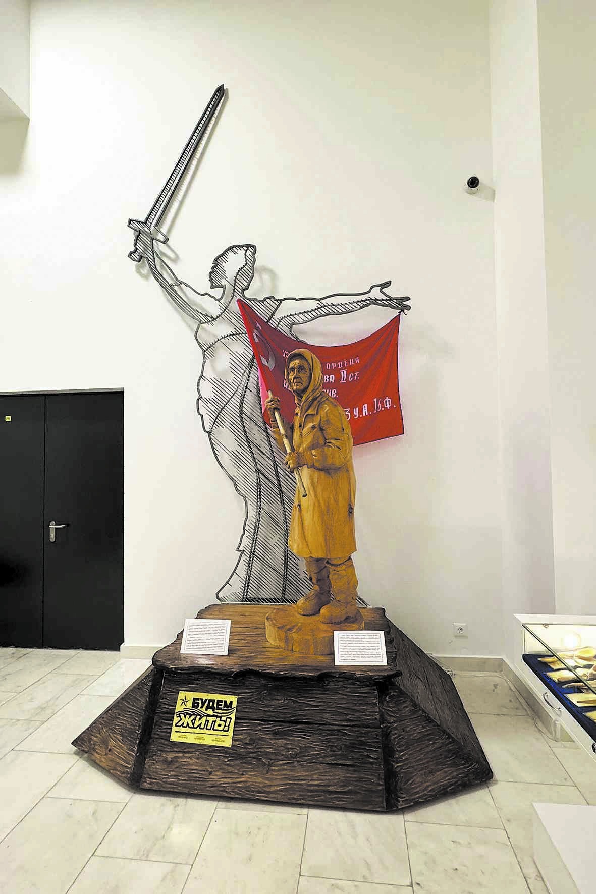 Наталья Фурсова заметила, что люди активно помогают музею. Один из тех, благодаря кому экспозиция СВО регулярно пополняется – воронежский резчик по дереву Александр Ивченко. В соавторстве с Александром Алферовым и Дмитрием Чернышевым он создал композицию «Будем жить!», ставшую первым музейным экспонатом о событиях в ходе СВО. Знаменитая бабушка с флагом, которой посвящен памятник, Анна Ивановна Иванова, героиня Донбасса, отказавшаяся менять красное знамя на продукты от украинских боевиков.