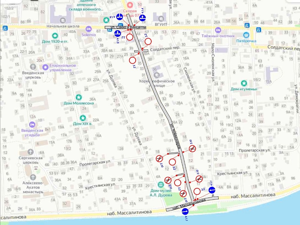 Ограничение вызвано продолжающимся обустройством водоотводных лотков и последующим восстановлением дорожного покрытия. По этой причине с 23:50 среды, 26 октября, до 23:50 9 ноября будет закрыто движение автотранспорта по участку улицы Коммунаров – от улицы Сакко и Ванцетти до набережной Массалитинова.