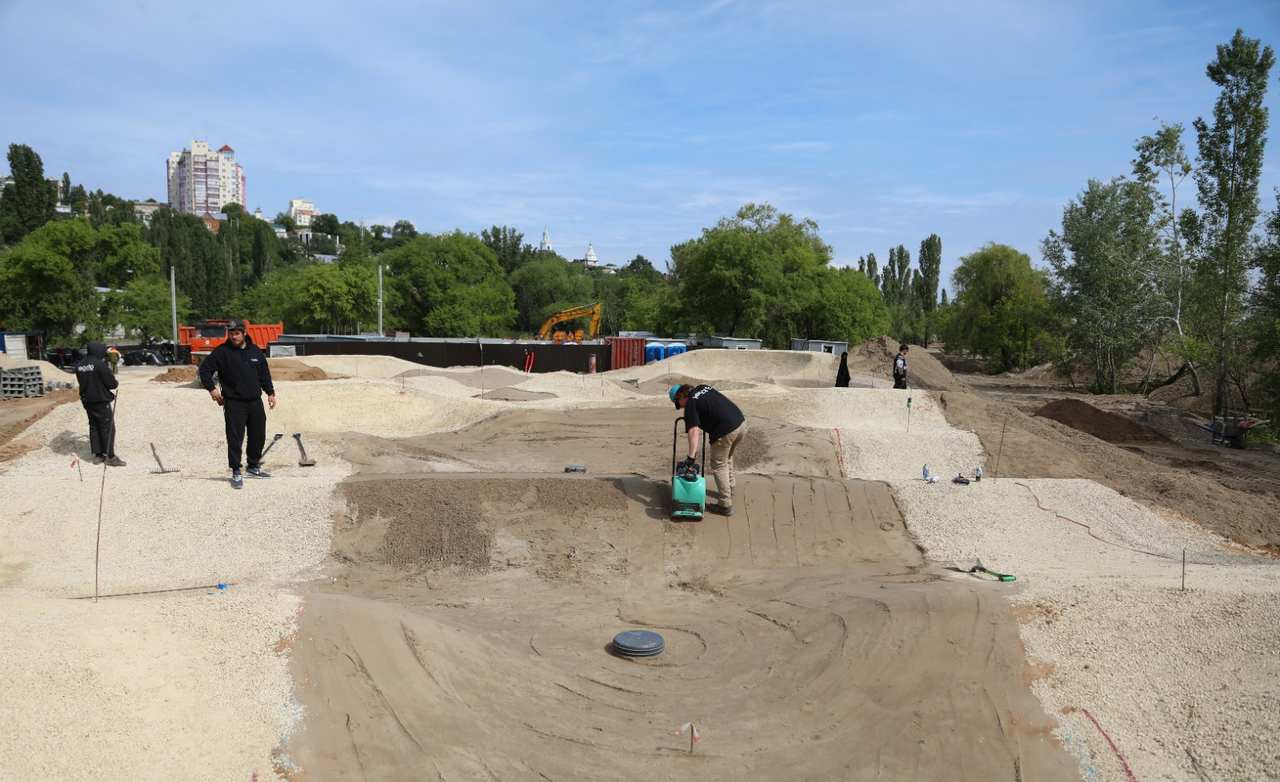 Важной частью второй очереди станет памп-трек – в Воронеже это будет первый объект такого размера. После открытия здесь смогут кататься новички и профессионалы, а пока на велосипедах его тестируют сами строители. Мэр считает важным привлекать к созданию таких специализированных площадок тех, кто сам увлекается таким спортом. Геометрия основания уже сформирована, следующий этап – асфальтирование, а также укладка газона, который будет служить буфером при катании. Проектом предусмотрена и система водоотведения, и особое для такого объекта освещение, чтоб использование трека было безопасным не только днём, но и вечером.