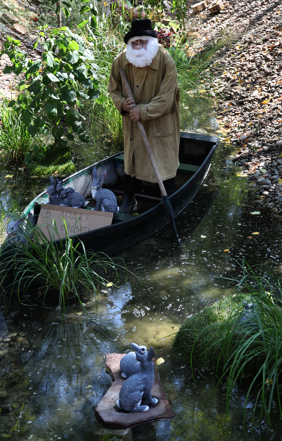 «Япония» – главная тема фестиваля «Воронеж – город-сад», безусловно, очень трудная для воплощения в жанрах экологических инсталляций. И в этом смысле настоящим открытием нам показался «Дед Мазай», переместивший свою лодку в парковый ручей.
