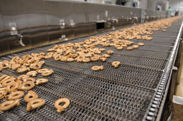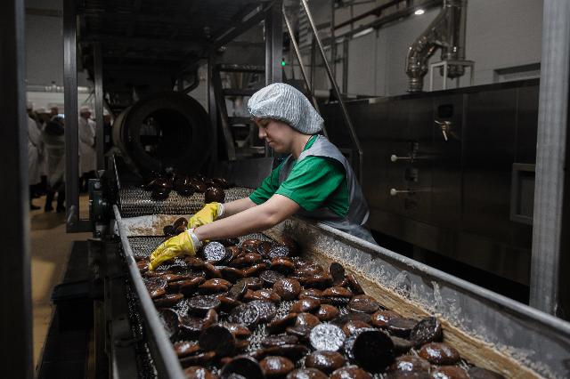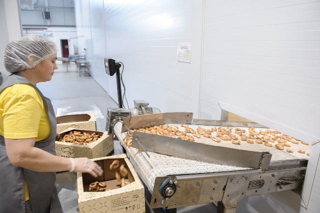 Далее Александр Гусев переехал на территорию кондитерского комбината, где осмотрел ход пусконаладочных работ на предприятии. Сладкую продукцию здесь выпускают уже более 20 лет. Недавно запустили новую линию по производству пряников и сушек, пока она работает в тестовом режиме.