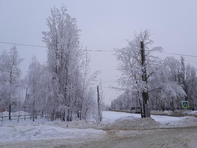 «Молочной» пеленой покрытый город украсил все деревья, провода, заборы маленькими ледяными колючками. Кто-то в соцсетях, откликаясь на многочисленные фотографии этой неземной красоты, метко окрестил это явление «зимней щетиной».