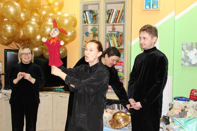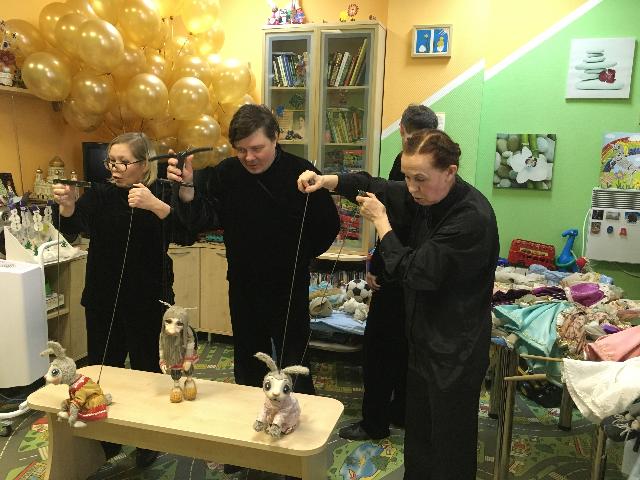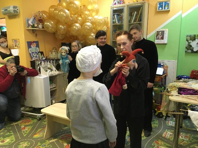 «Куклотерапия» – так называется долгосрочная программа театра кукол «Шут» им. В. Вольховского, в рамках которой и состоялось праздничное мероприятие. Ударной силой «десанта», прибывшего в больницу на ул. Ломоносова, были, конечно, актеры: заслуженная артистка РФ Татьяна Ечеина, артисты Григорий Вахрушев, Софья Иголкина, Станислав Беляев. Со своими, понятное дело, сценическими партнерами – кукольными персонажами из спектаклей текущего репертуара.
