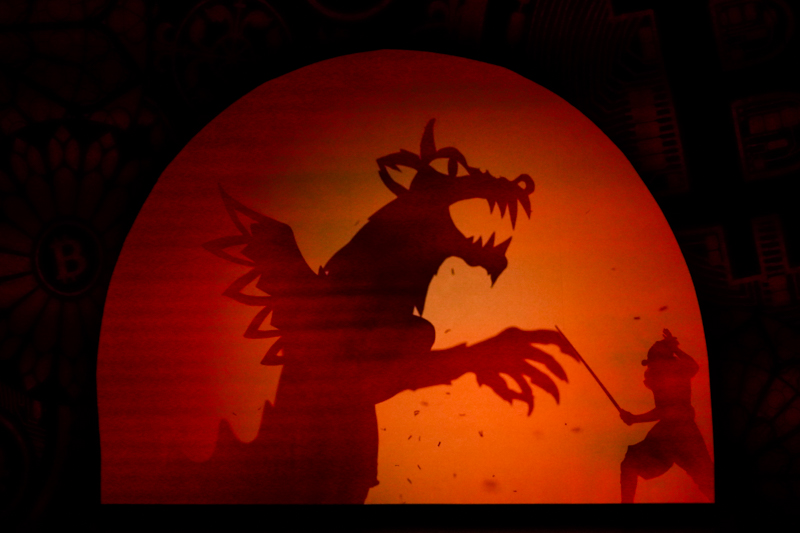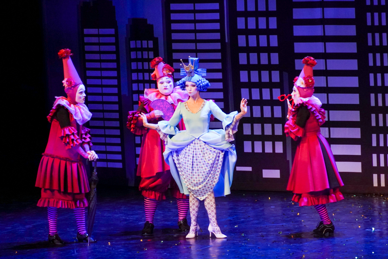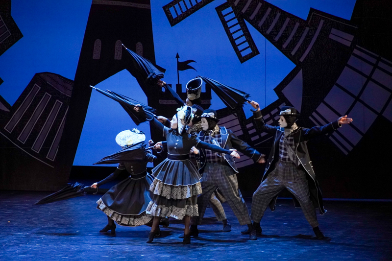 На сцене – пантомима, театр кукол и теней, звуковые эффекты в виде раскатов грома, пластика… Сценография напоминает современный мегаполис, а персонажи в исполнении драматических артистов напротив – словно сошли со страниц книги, написанной еще в XVII веке, – в париках и изящных костюмах.