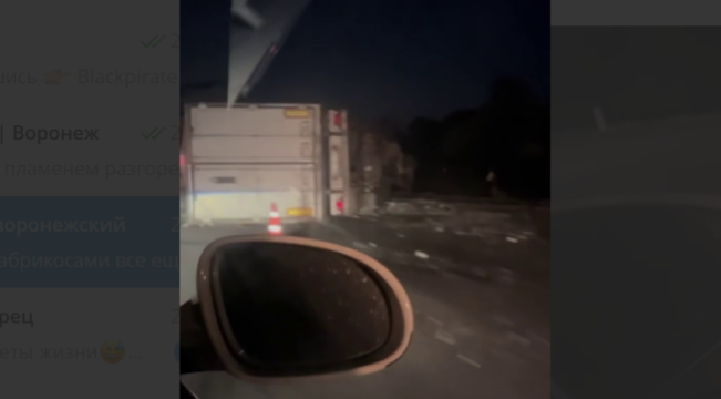 Перевернувшаяся с фруктами фура создала огромную пробку на М-4 «Дон» в Воронежской области
