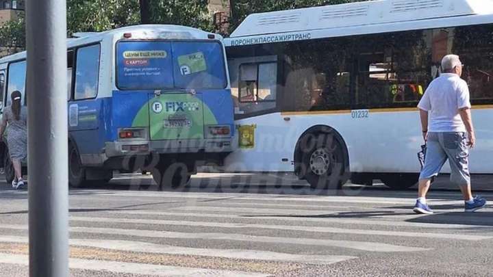 Мотоцикл столкнулся с пассажирским автобусом в центре Воронежа