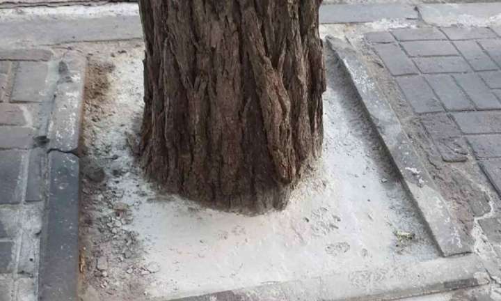 Остатки цемента строители сливали вокруг деревьев в центре Воронежа