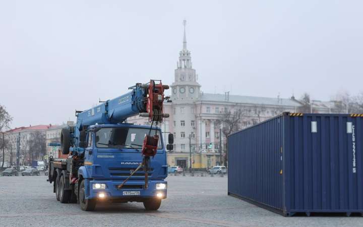 Монтировать новогоднее оформление начали на площади Ленина в Воронеже