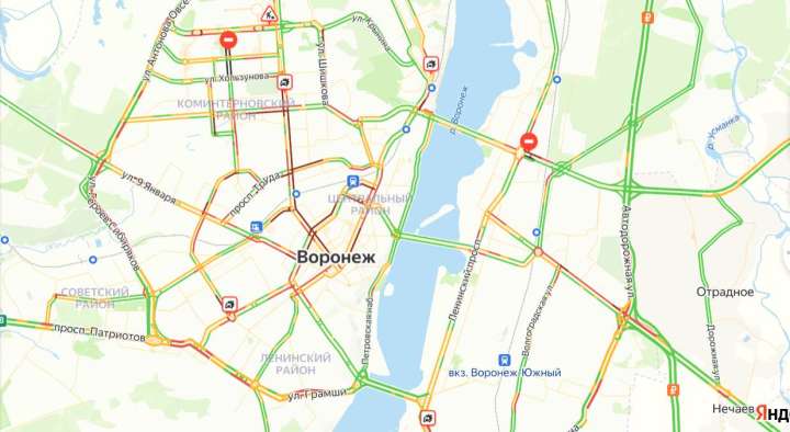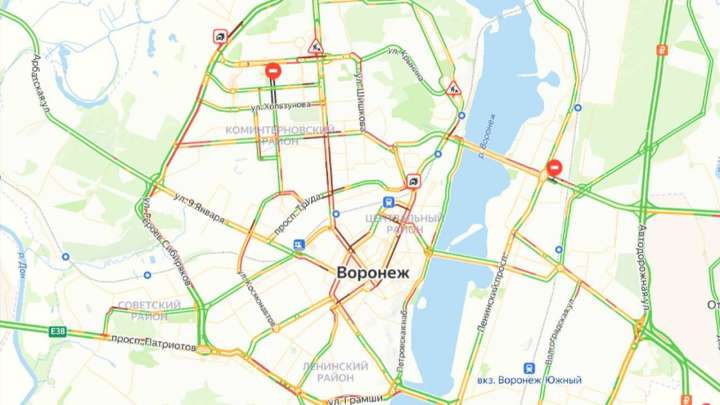 Утром 20 декабря 7-балльные пробки сковали движение в Воронеже
