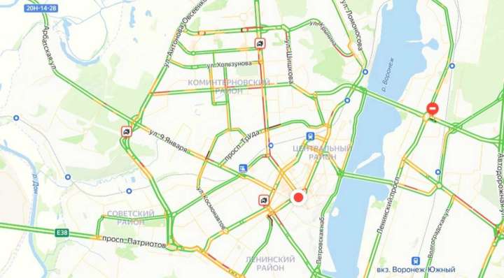Московский проспект в Воронеже утром сковала большая пробка